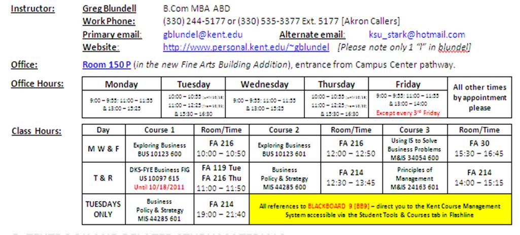 Contact Information For your benefit, I have published my contact information, as well as my office, advising & class hours. If these times do not suit your Schedule, please email me and we'll make a plan.