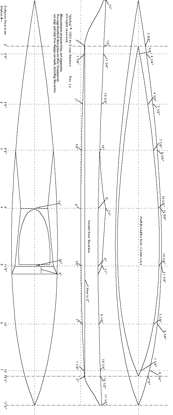 The Qivitoq is 17'6'' in length, has a beam of 24'', clipper