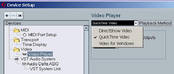 Cubase can play back various types of video files. Go to Devices>Device Setup to select the playback engine.