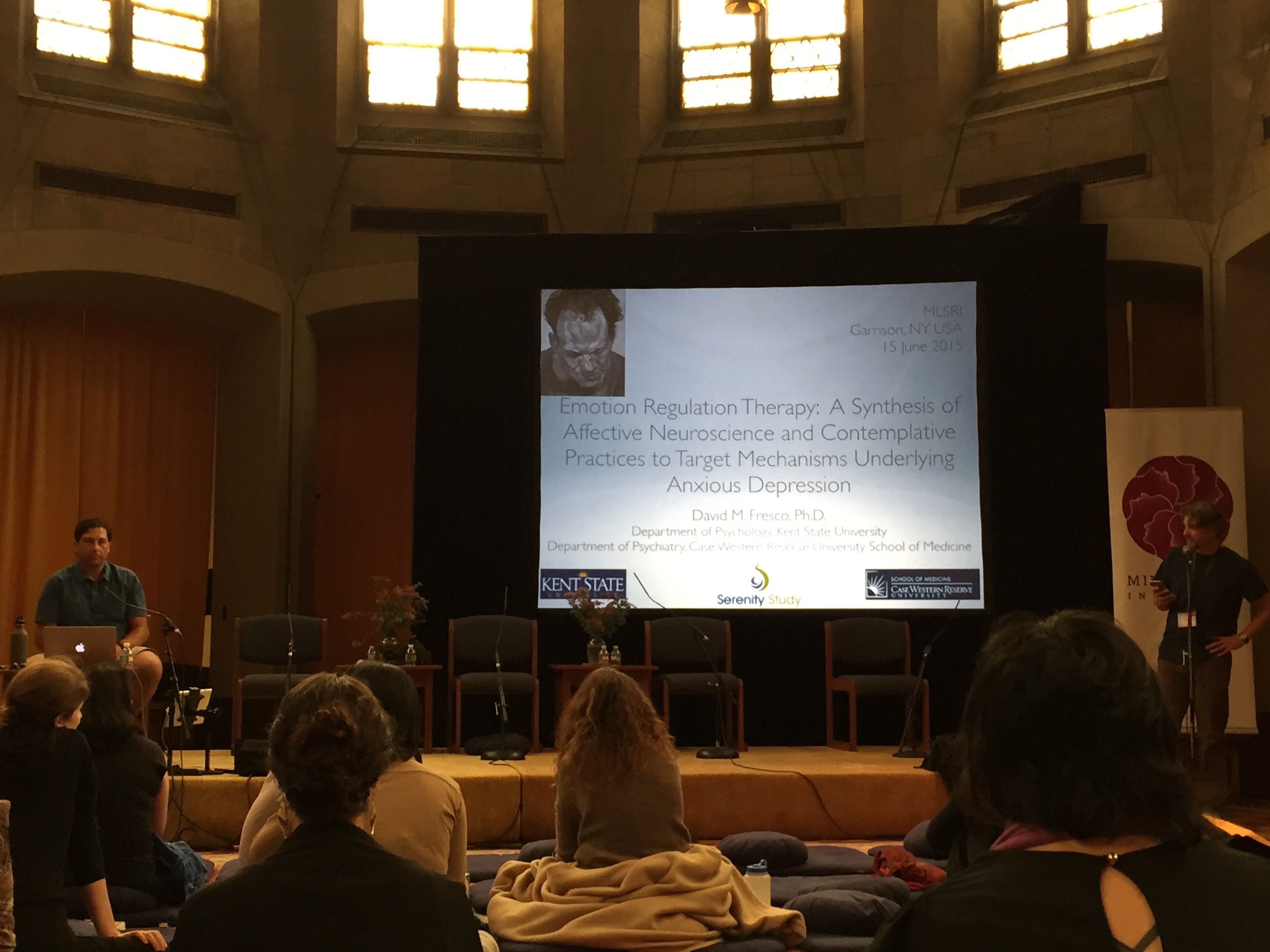 No shoes, no problem. PERL labbies, Dr. Fresco and Ryan Lackner presenting at the Mind and Life Summer Research Institute, Garrison Institute, Garrison, NY, USA