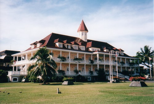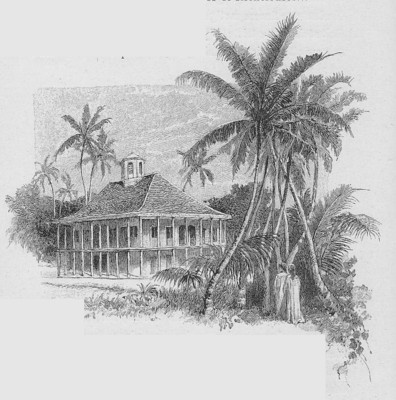(Source: C. Wesley Bird, Pierre Loti: Correspondant et dessinateur) The palace no longer exists. Here is a drawing of it that the author made during his stay in Tahiti. You can see the veranda. In 1990 the new town hall for Papeete was constructed as a replica.