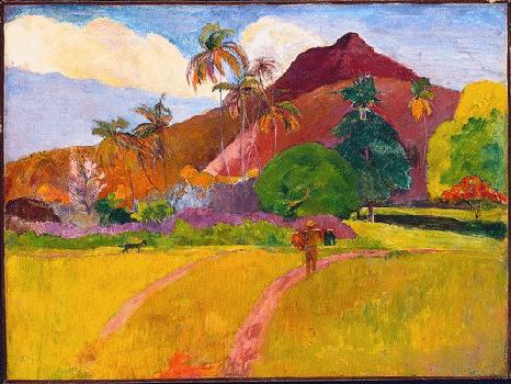 Note, again, that the author describes the scene like a painting ("ce tableau"). And here is Gauguin's tableau of "la corne du Fataoua." E483 Montagnes tahitiennes 1891 (Minneapolis: Institute of Arts)