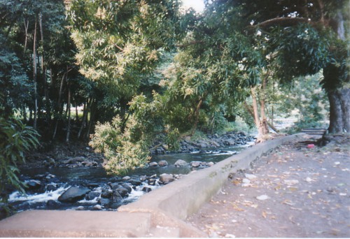 47.4 " Le ruisseau courait sur de grosses pierres luisantes, entre lesquelles sortaient les troncs frêles des goyaviers."