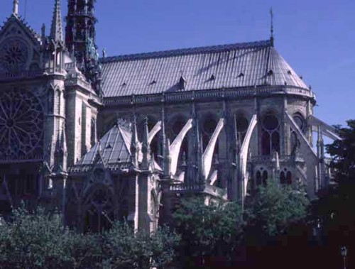 Un arc-boutant soutient les murailles d'un édifice de l'extérieur. Voyez, ci-dessous, les célèbres arcs-boutants de Notre Dame de Paris.