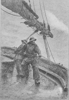embruns fouettant de l'arrière, puis de l'eau à paquets, lancée avec une force