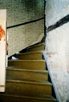Voici les marches dans la maison qui a servi de modèle pour la maison de Gaud [cf. Lecture 4]. Imaginez-la face à face avec le grand Yann, dans un espace aussi étroit.