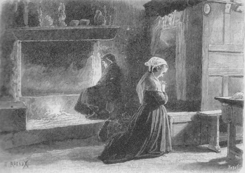 Elles restèrent là ensemble, presque muettes, les deux femmes, tant que dura ce crépuscule de juin-- qui est très long en Bretagne et qui là-bas, en Islande, ne finit plus. Dans la cheminée, le grillon qui porte bonheur leur faisait tout de même sa grêle musique. [1] Et la lueur jaune du soir entrait par la lucarne, dans cette chaumière des Moan que la mer avait tous pris, qui étaient maintenant une famille éteinte...