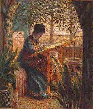 Un tableau de la première femme de Monet, installée à faire son ouvrage.