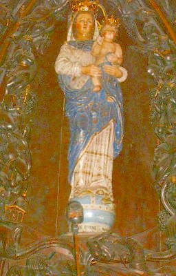 trônait, douce et impassible, la Vierge, patronne des marins, sortie pour eux