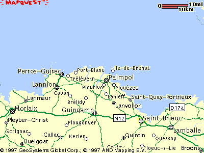 Voici une carte qui indique Paimpol et Ploubazlanec. Paimpol est une ville, mais Ploubazlanec est toute la région au nord de Paimpol