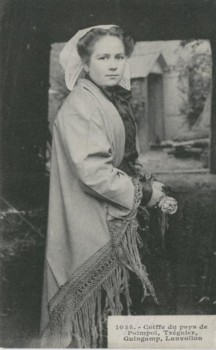 Voici une Paimpolaise de l'époque qui porte son châle. La coiffe, plus petite que celle dans la photo de la Lecture 4, est la coiffe "toute petite de la forme nouvelle" que porte Gaud.