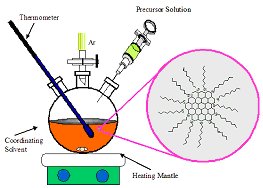 The Design of Metal-Organic Complexes Utilizing a Synergistic Approach In a number of metalloproteins hydrogen bonding (5 to 15 kcal/mol) is used in conjunction with metal-ligand covalent bonds to control activity within biomolecules. A current research challenge in synthetic inorganic chemistry is the incorporation of these types of interactions into well-defined metal compounds with the intension of developing enhanced catalytic and stoichiometric reactivity. Conversely, difficulties arise in synthetic systems because their structures are often flexible, so H-bonds form with various other species present, such as solvent molecules or counterions. These intermolecular hydrogen bonds are often unwanted and interfere with the desired function. Therefore, as in metalloproteins, synthetic complexes must have a combination of ligands placed within rigid frameworks located near the metal center(s) to ensure stable complex formation. Our research group utilizes a combination of novel set of ligands in conjunction with a vast array of metals throughout the Periodic Table to produce well designed multi-functional inorganic/organic hybrid systems. Students working in this area frequently expand beyond the reaches of classical chemistry subjects and embrace additional areas, as required, for the successful execution of a specific project. Standard Schlenk and glovebox techniques are employed to synthesize a variety of low-coordinate air and moisture sensitive inorganic complexes. Characterization methods include multinuclear NMR, X-ray crystallography, FT-IR and UV/vis spectroscopy, TGA/DTA, SEM, TEM, and X-ray powder diffraction. Such a combination of skills results in a fertile and creative environment for achievement of research goals Gold Chemistry In today’s society, gold chemistry currently has an important role in fields such as electronics and medicine. However, there is still a current lack of understanding in the fundamental reaction chemistry of gold. The development of gold (I) chemistry is dominated by the viewpoint that gold is a prototypical soft Lewis acid, which forms its most stable complexes with soft Lewis bases. Accordingly, the synthesis of gold (I) complexes with hard Lewis bases such as oxygen, nitrogen, or carbon has been limited to a select number of examples. Such complexes have been described as intrinsically unstable, and therefore have a pronounced tendency to either decompose to gold metal or aggregate into ill-defined clusters. Similar problems, although to a lesser extent, have been described for copper and silver. This instability has historically been described as a limitation to the development of gold chemistry. However, a few recent reports have hinted that a much richer field of coordination chemistry might be accessible. Therefore, in order to contribute to the understanding of this important metal, it is the goal of our research group to investigate the chemistry of previously “inaccessible” gold (I) alkyls, amides and alkoxides. These novel complexes will be isolated as crystalline solids and characterized via solution and solid-state NMR, X-ray crystallography, FT-IR and UV/VIS spectroscopy. Throughout this investigation, the stability and reaction chemistry of these complexes will be investigated. It is the intention of our research to generate a large family of complexes in order to gain a true appreciation for the intrinsic stability of gold complexes. Self-Assembly of Inorganic Nanocrystals It is envisioned that working on nanoscale materials will lead to unprecedented advances in electronics, biotechnology, national security and other fields. To achieve this progress, one of our initial goals is attaining a fundamental scientific understanding of nanoscale phenomena, particularly collective phenomena.